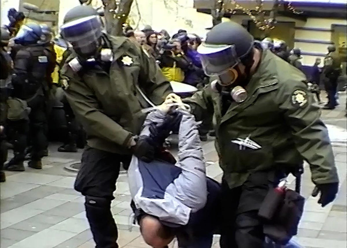 The documentary chronologically compiles footage from individuals and the news media to depict the protests against the World Trade Organization in Seattle in November and December of 1999. On the one hand, there’s an agenda in the way Bell and his co-editor, Alex Megaro, organize the footage both politically and narratively. But unlike most historical documentaries, WTO/99 and others like it encourage more independent thinking because they’re not explicitly telling the audience anything. Instead, it immerses us while also giving us an omniscience not felt on the streets.
